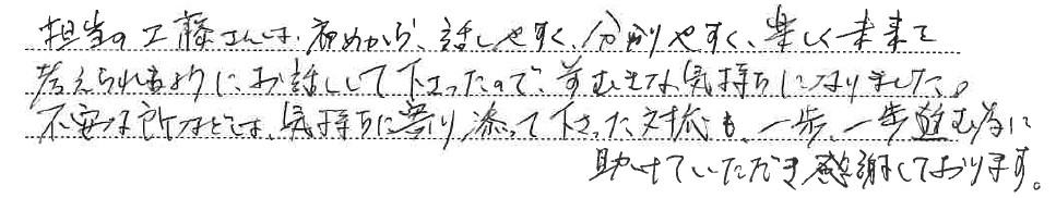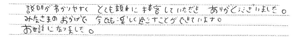 説明がわかりやすく、とても親身に接客していただきありがとうございました