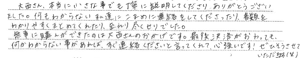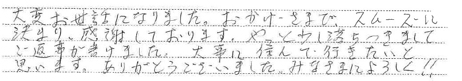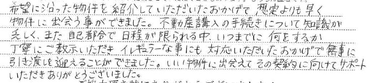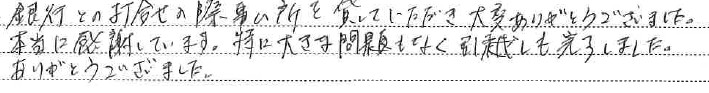 イレギュラーな事にも対応いただき無事に引き渡しを迎えられました