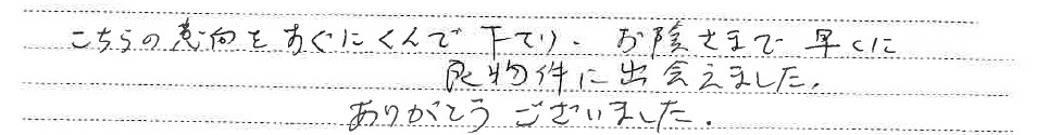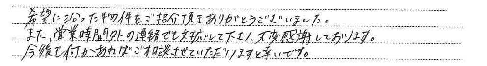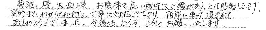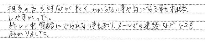 丁寧に対応してくださり、相談に乗って頂きまして、ありがとうございました